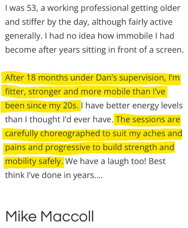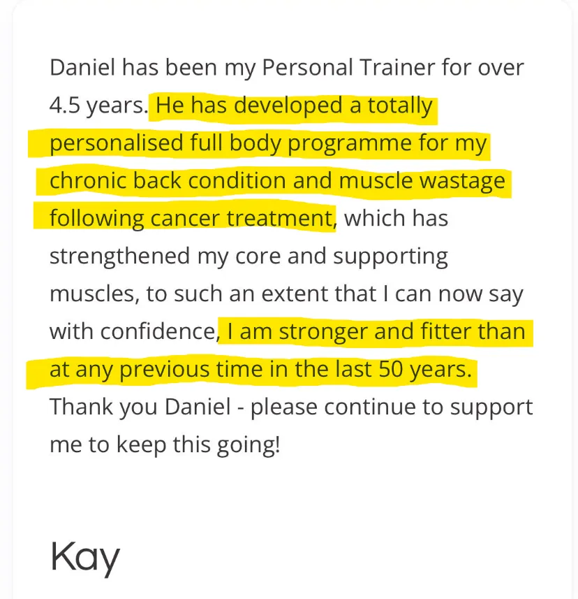 "If you want to be strong and stay as fit as possible, whatever your age or ability, this private coaching with Daniel is invaluable."- Andrea