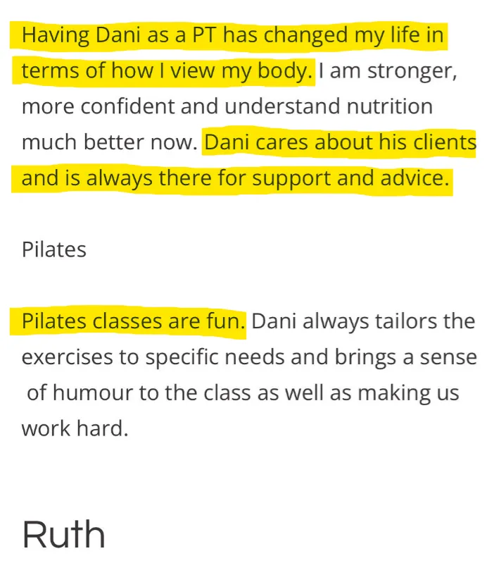 "Daniel is really good to work with. I thoroughly enjoyed my sessions. I mean, I do Pilates with him as well and that's really good too".- Margery