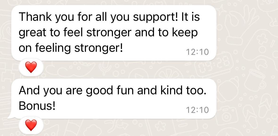 "During the sessions, I started lifting weights, which I've never done before. It's been brilliant and it's really given me so much confidence." - Marie